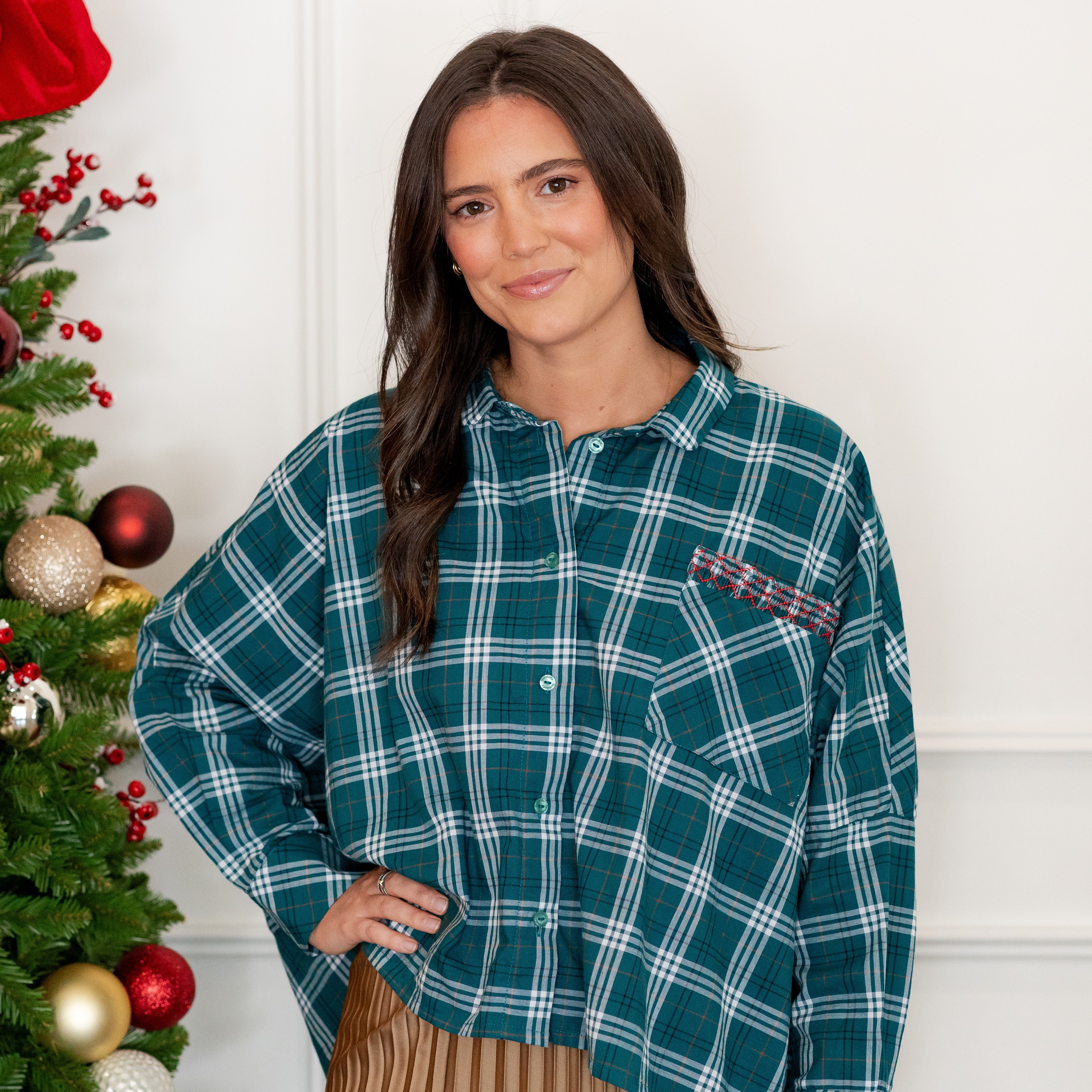 Back by popular demand, our Amber Women’s Shirt - Green Tartan is the perfect addition to your holiday wardrobe. This stylish top is ideal for any Christmas moment, with its beautifully hand-smocked pocket adding a touch of artisanal charm. It can be worn tucked or untucked, making it a timeless staple. Inspired by a classic Ralph Lauren Christmas and the joy of family matching moments, this family is a celebration of tradition and nostalgia.