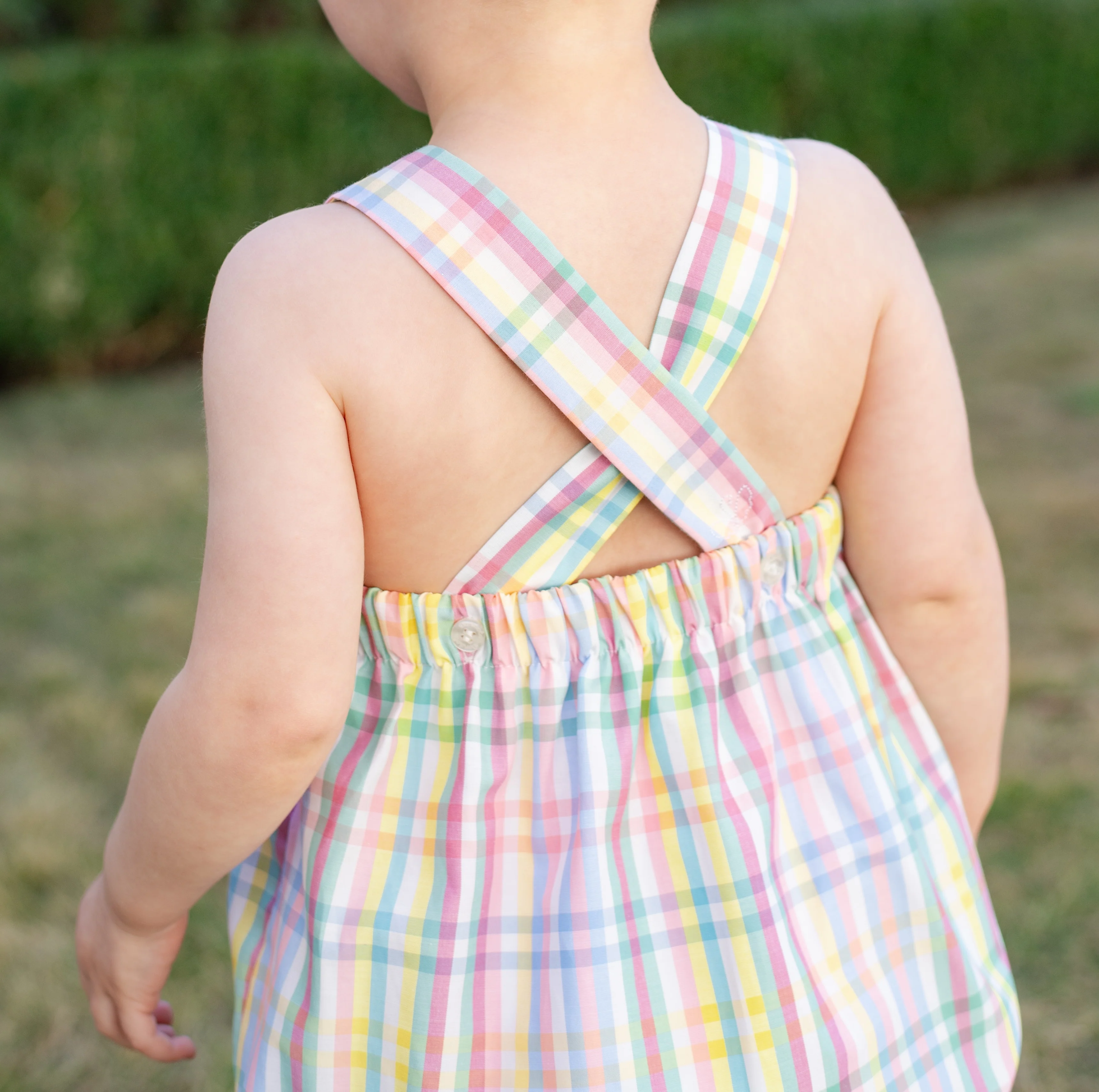Say hello to the Ethan Boy Bubble, this special gingham print offers a sweet classic look for your little one’s springtime activities. The hand smocking details on the bubble make it extremely comfortable and stretchy with a cross detail on the back. This lightweight and colorful piece will be perfect for every springtime occasion.