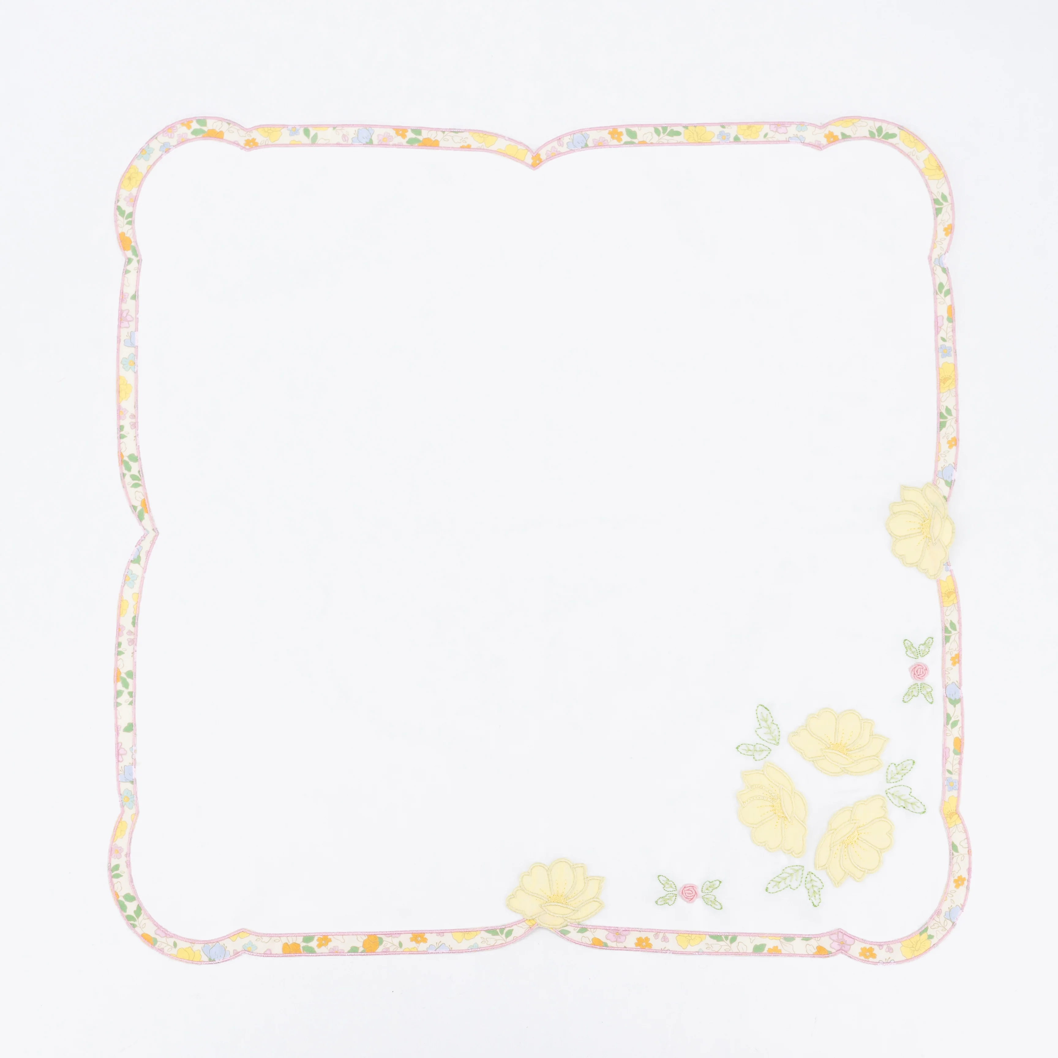 The Frances Napkins feature a beautiful fall floral embroidered trim, matching perfectly with our Frances clothing styles. The napkin’s canvas incorporates a mix of hand-embroidered roses, greenery and applique flowers in soft yellow tones and light greens.