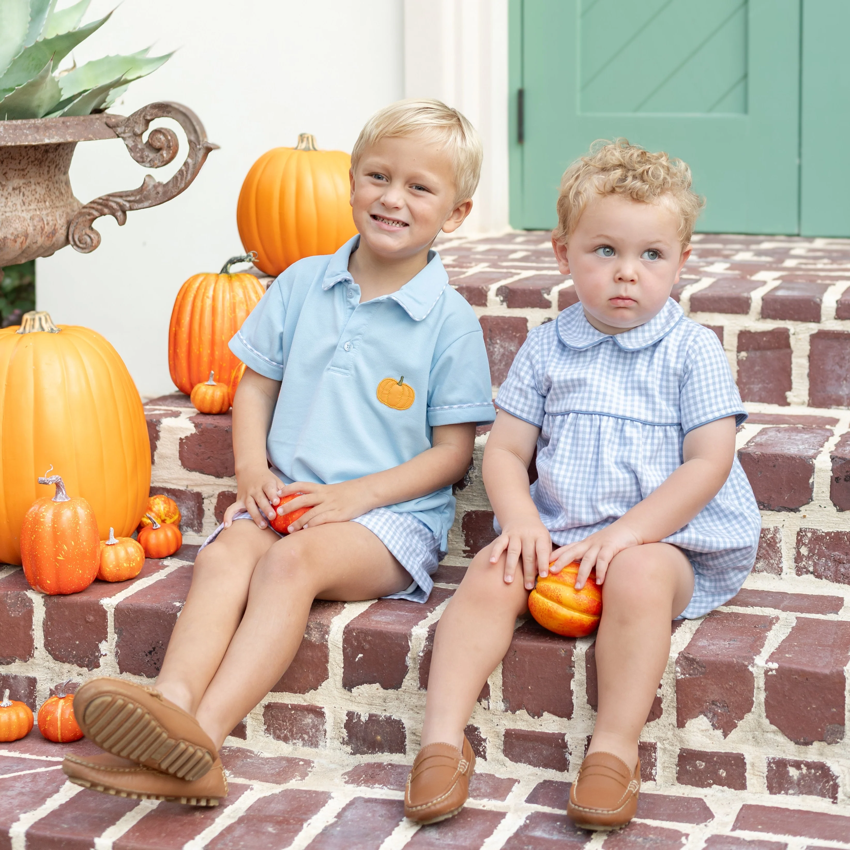 This beloved fan favorite gets a playful update with a Peter Pan collar and thoughtful detailing, perfectly capturing the spirit of fall. Ideal for pumpkin patch adventures, family dinners, or seasonal getaways, it’s a bubble you’ll want to wear again and again. The back features a delightful pumpkin appliqué, while the super-soft, cozy gingham cotton makes it as comfortable as it is timeless.