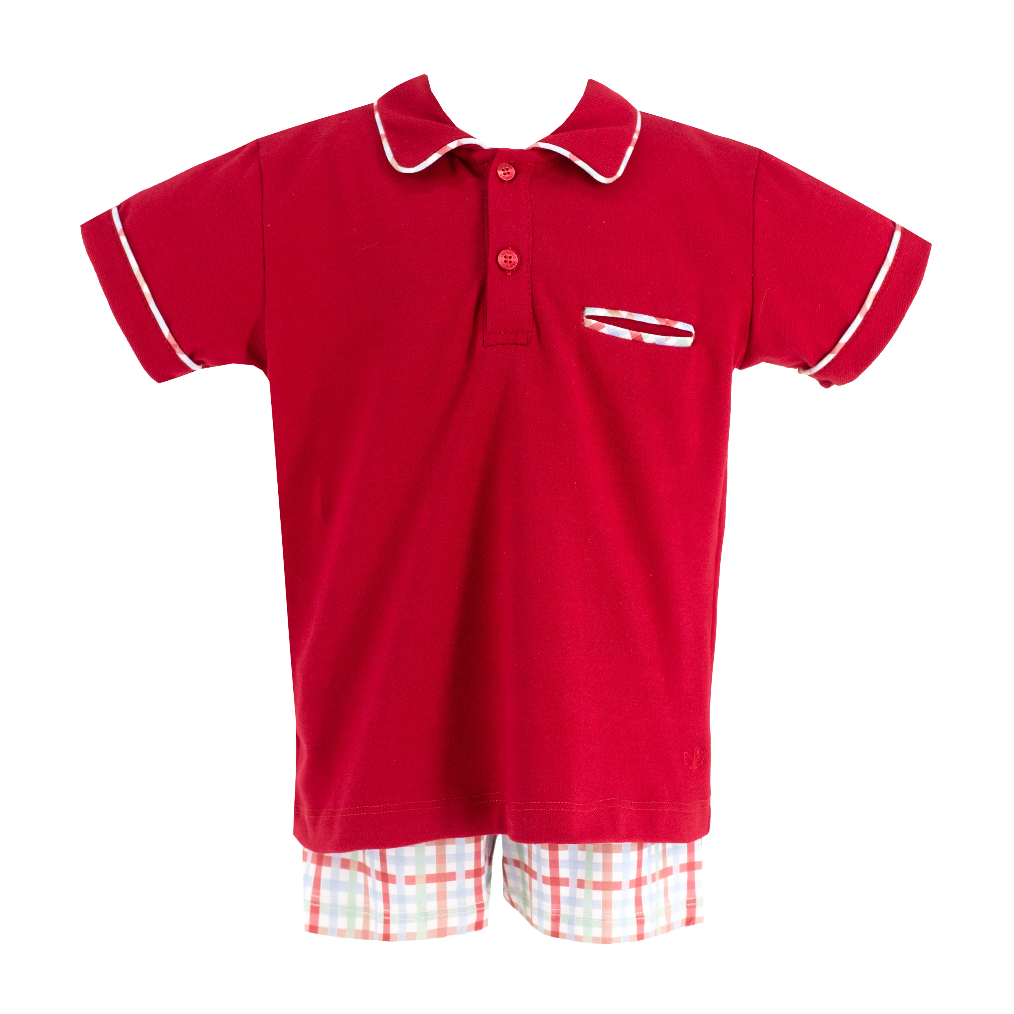 Meet the most charming boy Polo Set, ideal for Valentine’s Day and all springtime adventures! This darling set features a red polo shirt with gingham piping details, bringing a playful accent. The coordinating shorts complete the look, making it the perfect pairing for any occasion. Whether for Valentine’s parties or picture-perfect moments, he’ll be ready to steal hearts in style!