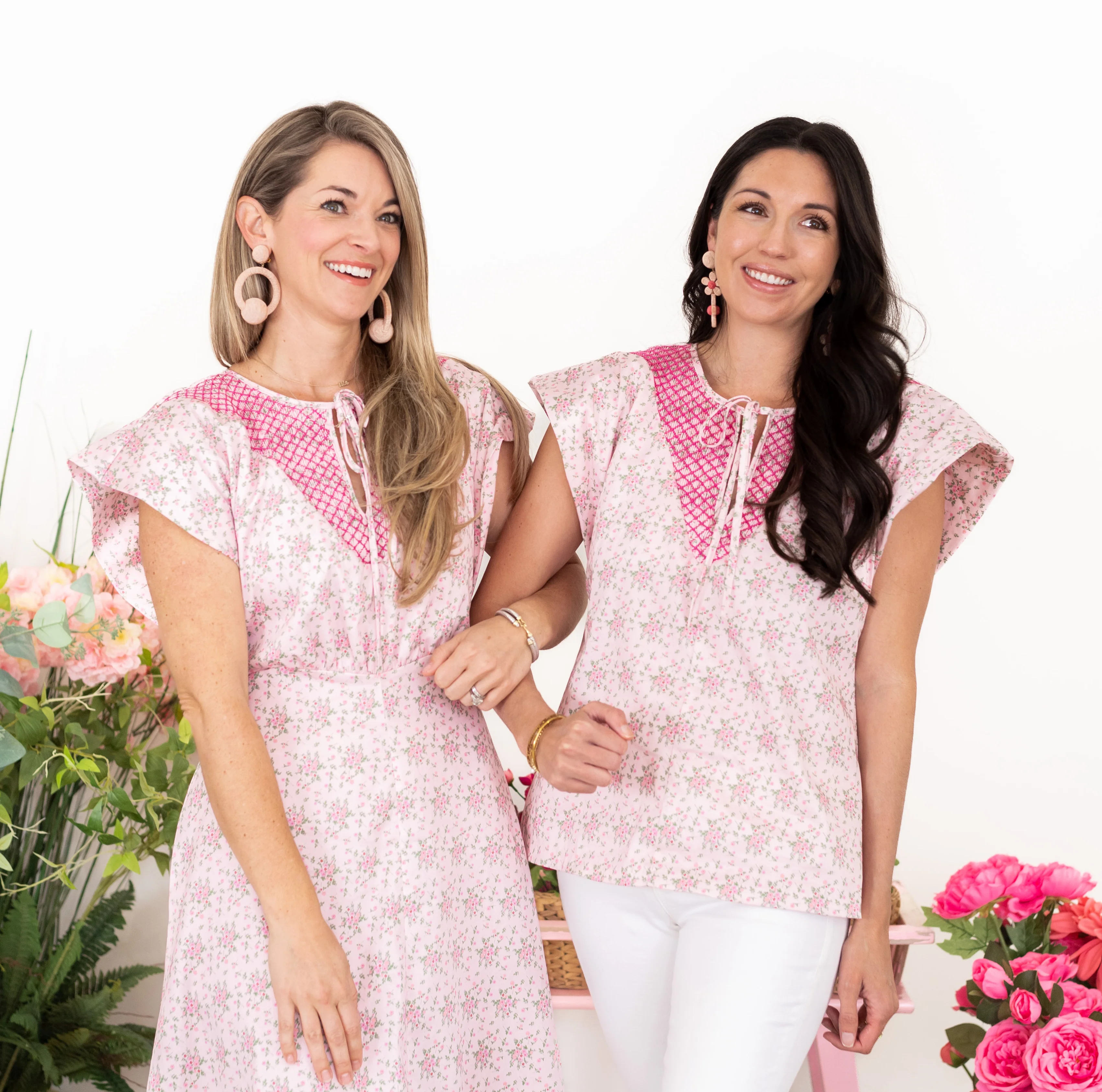 The Women's Rosalie Shirt offers a unique flare around the arms, and narrows around the waist, to showcase a flattering silhouette. The front feature showcases an amazing smocked deep v-neck design and a peep-hole tie along the neckline.