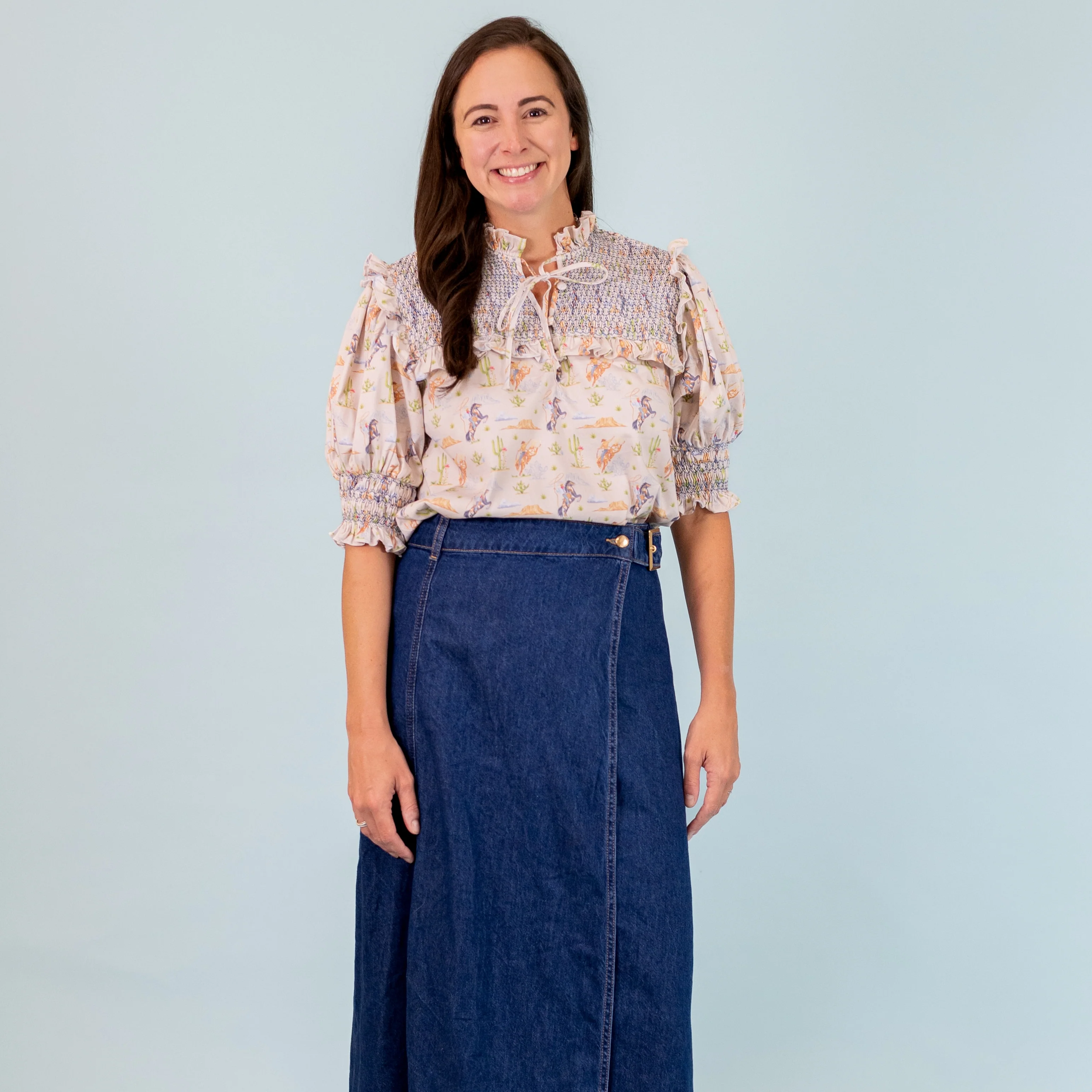 Pair it with your little one’s coordinating look for a matching moment that’s as photo-worthy as it is heartfelt. From birthday celebrations to rodeo days and everything in between, this blouse captures the joy of dressing with intention and the beauty of heirloom storytelling.